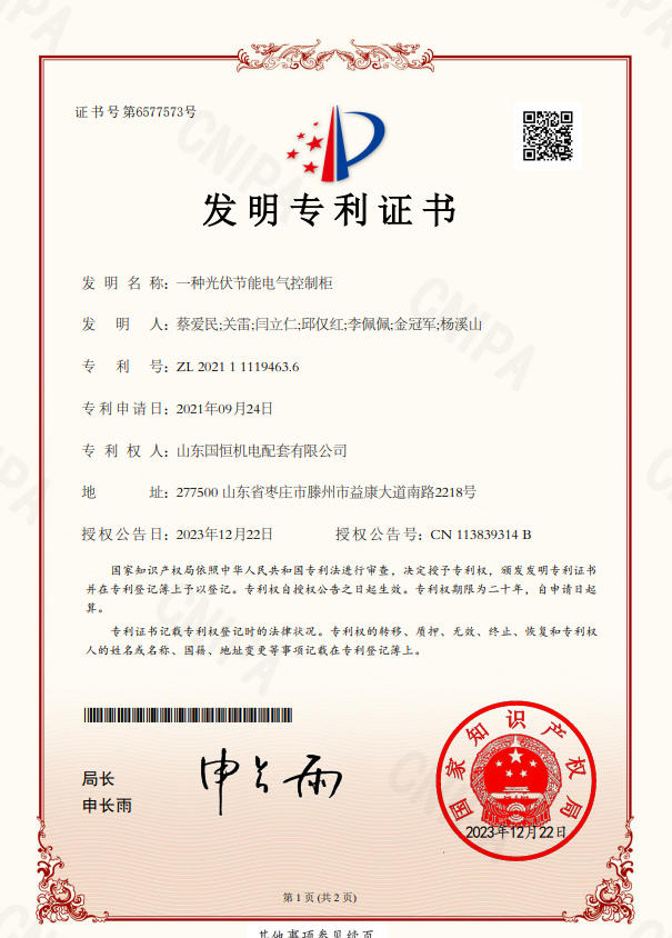 山東國(guó)恒機(jī)電配套有限公司簡(jiǎn) 介 山東國(guó)恒機(jī)電配套有限公司是一家集新能源、高科技、智能化生產(chǎn)研發(fā)、制造、銷(xiāo)售為一體的綜合性現(xiàn)代化高新技術(shù)企業(yè),公司座落在魯班故里、墨子之鄉(xiāng)滕州,公司始建于2005年,注冊(cè)資本1億元,擁有各類(lèi)中、高級(jí)專(zhuān)業(yè)技術(shù)人員100余名。主營(yíng)業(yè)務(wù)涉及高科技智能電力裝備、新能源儲(chǔ)備輸送,220kv及以下輸變電工程勘察設(shè)計(jì)、制造、銷(xiāo)售、安裝、售電和智能充電樁能效運(yùn)維,并從事生產(chǎn)制造交直流充電樁設(shè)備、成套開(kāi)關(guān)設(shè)備、各型號(hào)高低壓開(kāi)關(guān)柜、箱式變電站等電氣設(shè)備,是棗莊地區(qū)唯一一家國(guó)資入股的新能源高端品牌企業(yè)。公司擁有獨(dú)立…